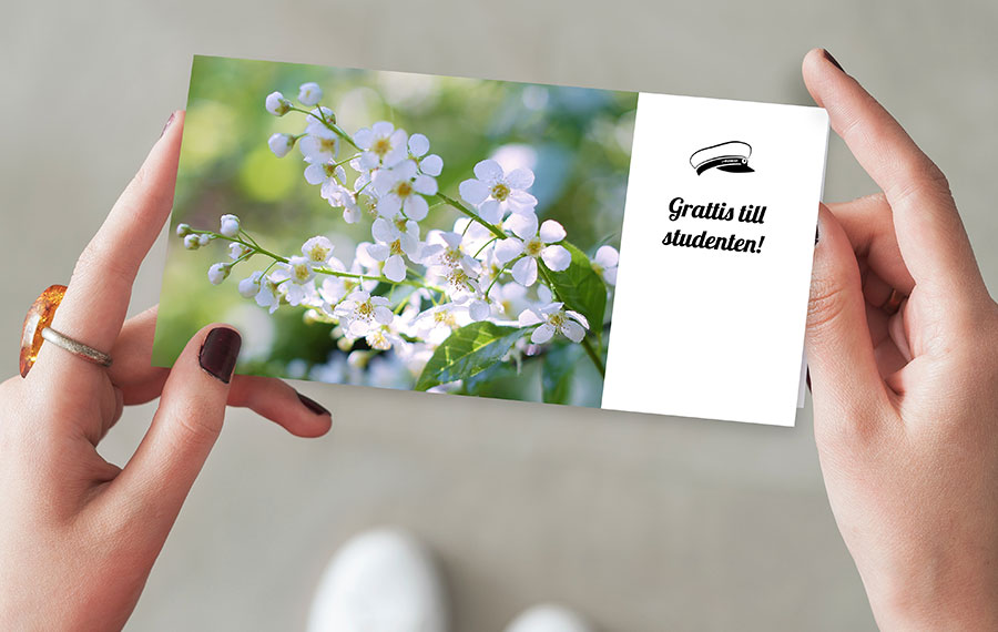 - Bilder och text kan läggas till på kortets insida