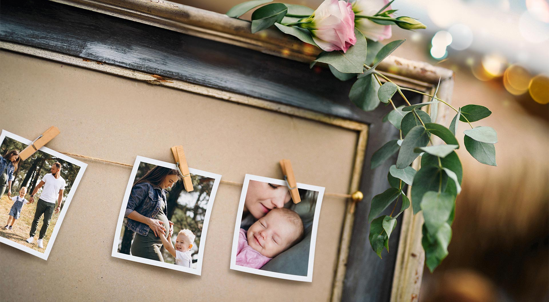 Festligt eller mer avslappnat? När festen ordnas inomhus kan foton hängas upp på många sätt, till exempel i ramarna på en gammal tavla eller längs en ljusslinga. Detta är ett stämningsfullt sätt att trissa upp stämningen på inför dop, babyshowers, svensexor eller födelsedagsfester. En minimalistisk lösning är att lyfta fram några bilder i rampljuset med klipps, men en festligare fotovägg skapas när det är gott om bilder. Har du till exempel en julgransljusslinga i ditt förråd som väntar på att bli festens centrum vid andra tider än julen?