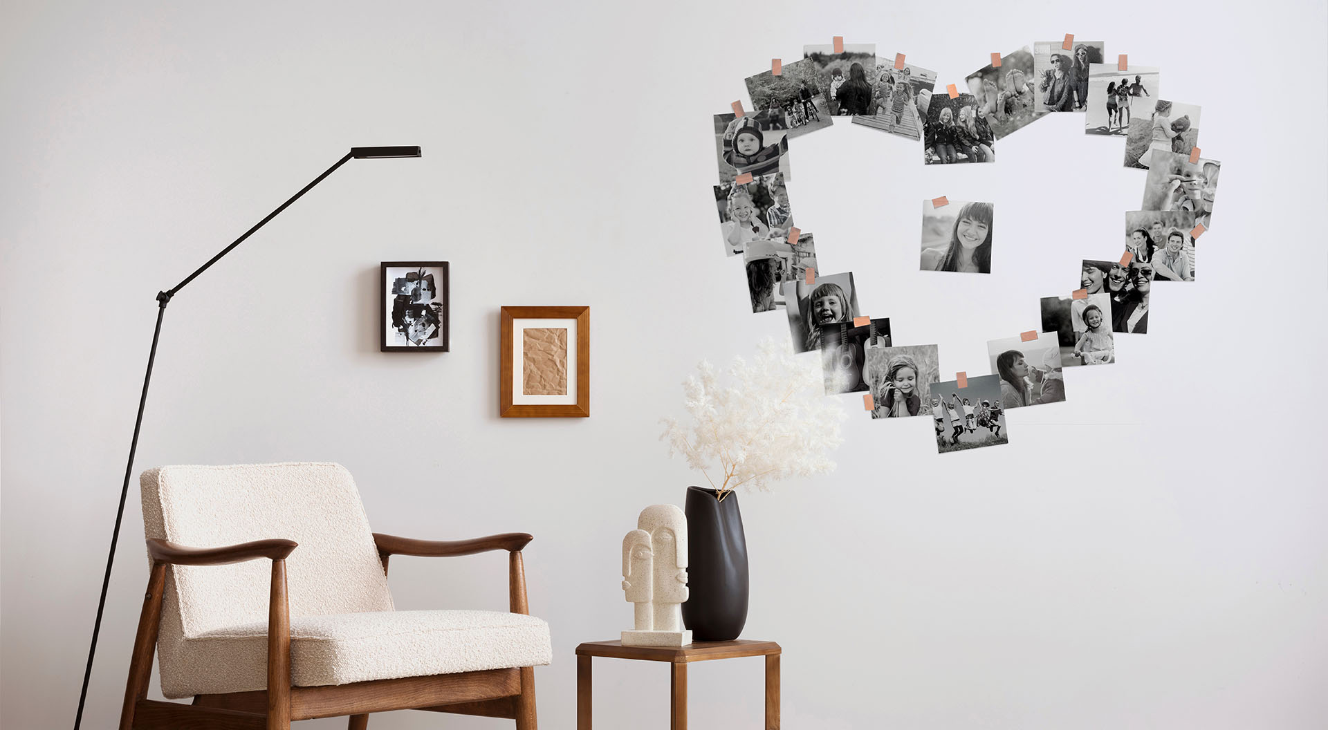 Hjärtformat fotokollage som väggdekoration