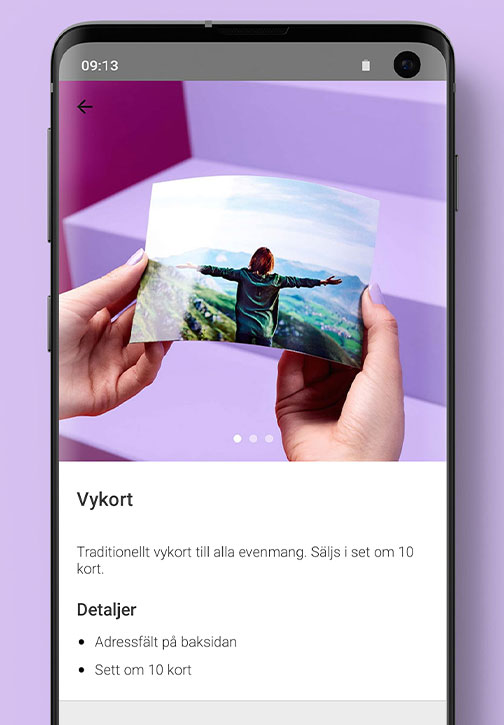 Beställ bildprodukter direkt från din Android-enhet. Du behöver inte föra över bilderna till din dator, du kan enkelt beställa på din telefon eller surfplatta var som helst! Du kan också använda bilder från Google Foto direkt via appen.